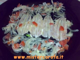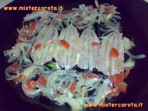 Ingredienti: 300 gr di acciughe freschissime - 150 gr di cipolla bianca - 4 limoni - 2 pomodorini - olio - sale - pepe o peperoncino.