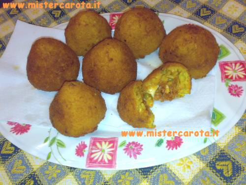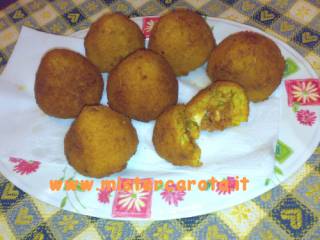 Completate tutti gli arancini, fateli riposare 1/2 ora nel frigo, dopo di che passateli nella pastella e poi nel pangrattato, facendolo aderire bene, una volta impanati, friggeteli a fuoco moderato, mi raccomando questa operazione non deve essere fatta con l'olio a temperatura elevata, altrimenti gli arancini si colorano fuori restando freddi dentro e non si ottiene il classico arancino con mozzarella filante.