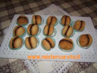 Ingredienti: 100 gr di farina di mandorle - 100 gr di farina 00 - 100 gr di zucchero - 100 gr di burro - 1 tuorlo - Nutella (*) q.b.