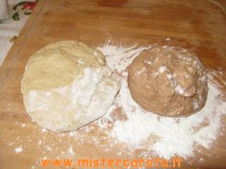 Se voleta farne metà al cacao, potete tagliare a metà la pasta appena lavorata e aggiungervi il cacao (ed eventualmente il latte se vedete che l'impasto è diventato troppo duro).