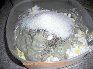 In una ciotola mettiamo la ricotta, il sale, l'uovo, il pepe...