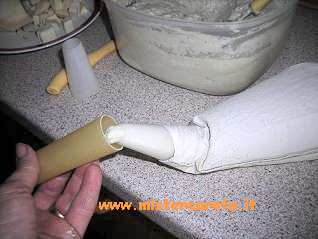 Come vedete io uso la tasca da pasticcere per facilitare l'operazione.