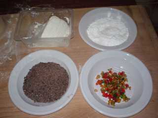 Ricotta, zucchero a velo, canditi, cioccolato e albume sono gli ingredienti della farcia, della farcitura, del ripieno.