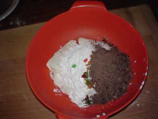 Mescoliamo alla ricotta i canditi, con lo zucchero a velo e con il cioccolato ridotto in scaglie o tritato.