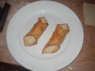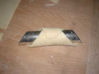 badiamo di avvolgerlo non di lato ma diagonalmente e l'angolo lo pennelliamo di albume prima di chiuderlo.