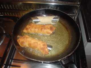 Ora facciamo scaldare l'olio in una larga padella e friggiamoli sino a che diventino dorati.