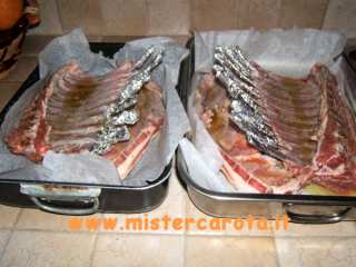 Coprire le parti ossee con dell'alluminio da cucina e infornare a 180-200°C. per circa 1 ora. Questo carrè in foto è stato cotto nel forno a legna, squisitooooo!!!!!!