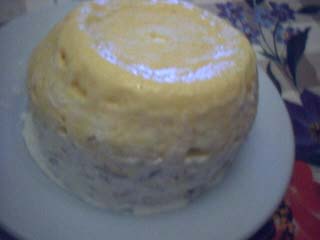 Ora possiamo dedicarci alla vera e propria cassata. Abbiamo bisogno di un Pan di Spagna già fatto. Ma prima prepariamo la farcia. Sbattiamo con un cucchiaio di legno la ricotta e 130 gr di zucchero a velo in modo da ottenere una sofficissima crema. Aggiungiamo la vaniglina, due o tre cucchiai di canditi ed un po' di cioccolato fondente grattugiato e mescoliamo molto bene. Prepariamo anche la copertura: facciamo un po' di sciroppo con 100 gr di zucchero ed un goccio d'acqua, facciamo bollire fino a che si formino grosse bolle in superficie. Infine sbattiamo a neve gli albumi e 40 gr di zucchero a velo. Ora dobbiamo tagliare il Pan di Spagna in modo da ottenere due dischi. Un disco lo usiamo per foderare il fondo di una teglia di uguali dimensioni. Il secondo disco lo taglieremo in tante strisce in modo da poter foderare, aiutandoci con un po' di crema, le pareti della teglia. Ora versiamo la crema di ricotta all'interno di questa 'cassetta' di Pan di Spagna, e poi copriamo con le altre strisce rimaste di Pan di Spagna. Adesso versiamo lo sciroppo su tutta la superficie del Pan di Spagna e subito dopo mettiamo gli albumi sbattuti a neve con lo zucchero a velo, e livelliamo con un lungo coltello la superficie. Mettiamo la cassata nel forno con lo sportello aperto e solo per qualche minuto a calore moderatissimo per fare in modo da far coagulare l'albume sbattuto a neve e trasformarlo in una croccante meringa.