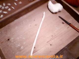 Ricavate dall'impasto dei cilindretti di 0,5 cm di spessore e tagliateli a pezzetti di 1 cm di lunghezza.