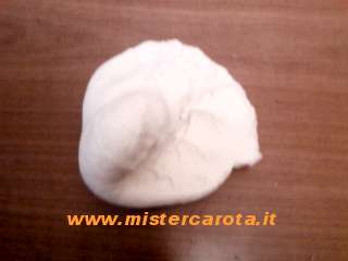 Continuate a versare acqua e a raccogliere e impastare con farina fino ad ottenere un impasto abbastanza duro: le farine dovranno assorbire la quantità di acqua necesaria ad ottenere un buon impasto che deve essere abbastanza duro ma nello stesso tempo facile da lavorare e quindi la quantità di acqua indicata è indicativa.