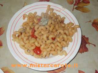 Ingredienti: 250 gr di pasta tipo celentani - 150 gr di prosciutto cotto - 50 gr di speck - 50 gr di pomodorini - 150 gr di gorgonzola al mascarpone - 1/4 di cipolla - sale - pepe - olio extravergine d'oliva - 50 gr di parmigiano.