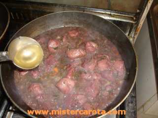 Proseguire la cottura per almeno 1 ora e mezza. Se si cuociono pezzi di carne più grossi aumentare il tempo di cottura. Appena la salsa di cottura sta per asciugare, aggiungere di tanto di tanto il brodo di carne e, se finisce il brodo, dell'acqua calda