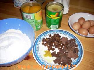 Preparare tutti gli ingredienti, mettere a mollo l'uvetta in acqua tiepida. Spezzettare o grattugiare il cioccolato.