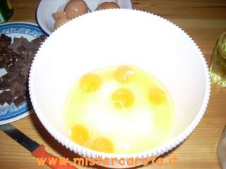 Aggiungere le farine, il burro e l'olio all'uovo montato.