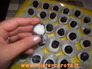Unire tutti gli ingredienti in una ciotola, tranne la glassa ovviamente, impastare con le mani fino ad ottenere un composto sbricioloso ma omogeneo. Formare tante piccole palline e mettere in freezer per circa 1 ora. Quando si sono induriti bene, tuffarli uno a uno nella glassa al cioccolato e far solidificare a temperatura ambiente. Riporli di nuovo in freezer fino a circa 1 ora prima di servirli.