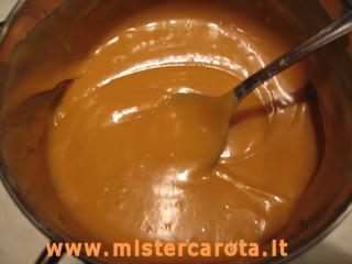 Ho messo tutti gli ingredienti in un pentolino di acciaio e, a fuoco lento, ho mescolato in continuazione fino ad arrivare a questa colorazione.