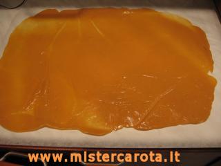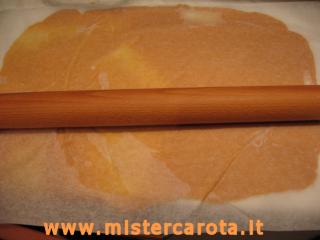 Ho rovesciato il tutto su un foglio di carta forno, ricoperto con un altro foglio e spianato con il mattarello.