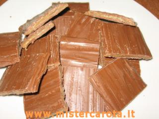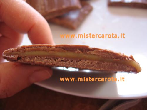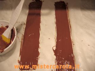 Quando il cioccolato si è rappreso ho girato le strisce e stessi procedimenti di pennellatura, rifinito un po' i bordi e in frigo nuovamente.