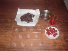 Mescoliamo 2/3 di liquore con 1/2 di sciroppo di zucchero e versiamone qualche goccia sopra ogni ciliegia di ripieno.