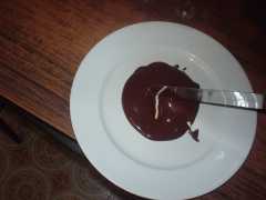 Eliminiamo l'eccesso di cioccolato versandolo su un piatto o nel pentolino