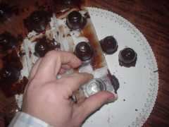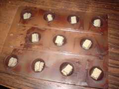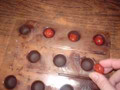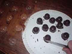 ...ecco sformati i cioccolatini! Sempre con il solito coltellino rifiliamo ogni cioccolatino dal cioccolato in eccesso