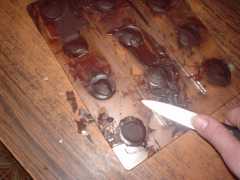 Appena lo stampo è asciutto puliamo ogni cioccolatino con un coltellino...