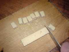 Tagliamo a pezzettini i wafer in modo che ciascun pezzo entri come ripieno di un cioccolatino.