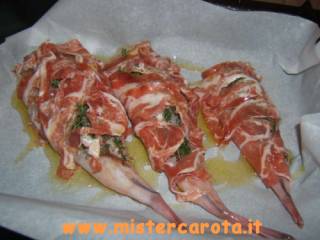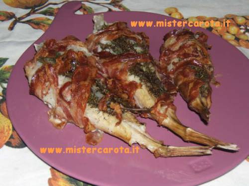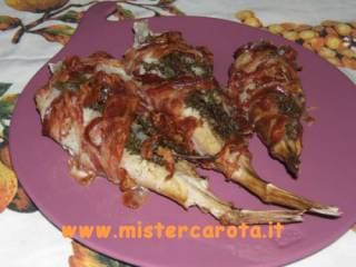 Ingredienti per 2 persone: 3 code di rospo pulite - 9 rametti di timo - sale - pepe - olio extravergine d'oliva - pancetta a fette q.b.