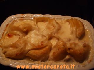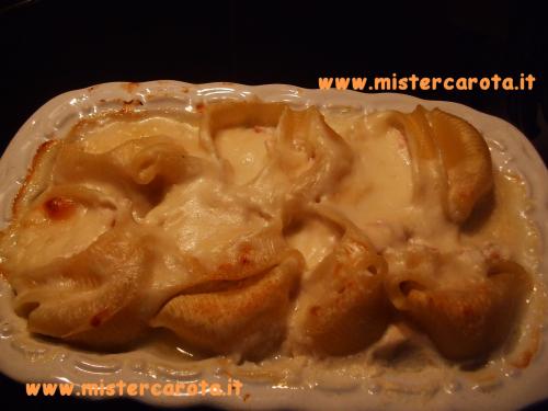 Ingredienti: 500 gr di conchiglioni - 250 gr di spinaci - 750 gr di ricotta - parmigiano - olio extravergine d'oliva - prosciutto cotto - besciamella - gamberi - asparagi - 1 uovo - pepe - brodo vegetale.