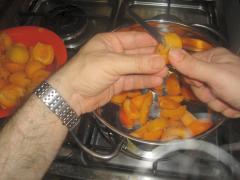 Si lavano molto bene le albicocche, si asciugano, si dividono a metà e si toglie il nocciolo