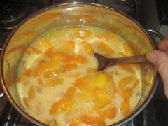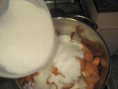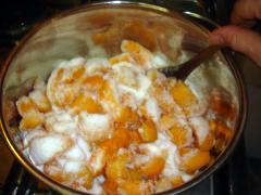 ...e si mettono a cuocere inizialmente a fiamma bassa, per alcuni minuti, per fare sciogliere lo zucchero ed in modo che la frutta inizi a rilasciare il suo sughetto
