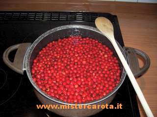 Raccogliere le bacche ben rosse e grosse, lavarle e metterle in casseruola, coperte di acqua.
