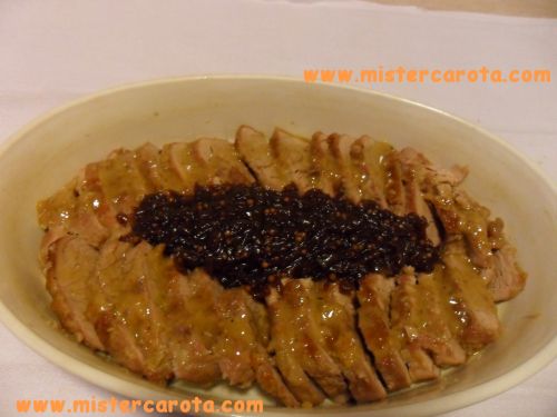 (arrosto di filetto di maiale al vino bianco, accompagnato con la Confit d'oignon)