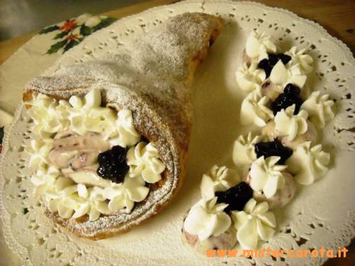 Questa cornucopia non ha proprio la classica forma, avrei dovuto piegare la parte finale, ma l'ho fatta di corsa e non c'ho pensato tanto, era buona lo stesso.