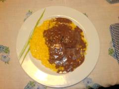 Aggiungere il brodo o l'acqua con il dado e, a cottura quasi ultimata, mescolare lo zafferano.