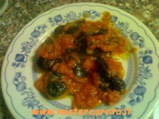 Dopo aver appena sfrigolato l'aglio nell'olio mettete dentro i pomodori.