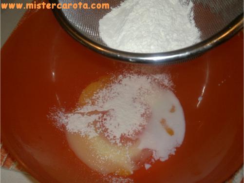 Sbattere l'uovo con la farina, il burro fuso, il latte e lo zucchero.