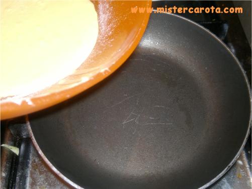 far scaldare bene un piccolo padellino e mettere metà della crema per crepes.
