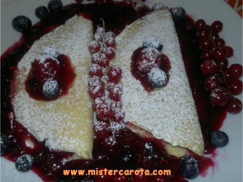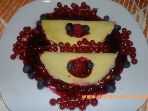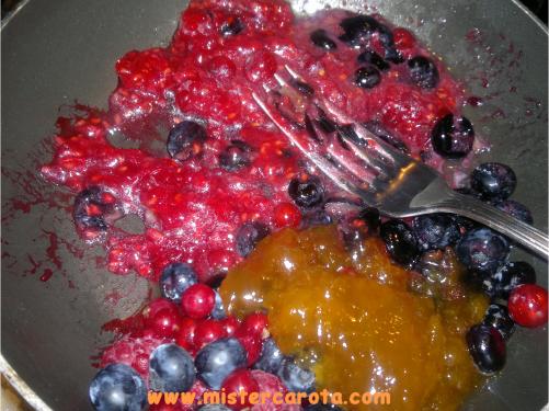 Ingredienti per 2 persone: 250 gr di frutti di bosco - una noce di burro - 1 cucchiaio di farina - 1 cucchiaio di latte - 1 uovo - 1 cucchiaio di zucchero - 1 arancia - 2 cucchiai di marmellata di albicocche.