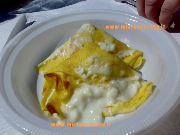 Ingredienti per le crepes: 2 uova - 15 gr di burro - 30 gr di farina - 100 gr di latte - sale - pepe. Ingredienti per la besciamella: 125 gr di latte - 125 gr di fumetto di gamberi - 15 gr di burro - 15 gr di farina - sale - qualche gambero tritato.