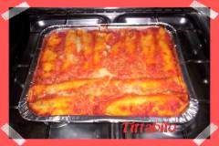 Prendi una teglia in alluminio, imburrala e versaci un po' di sugo, poi sistema le crepes condite con il sugo, versa sopra altro sugo, una spolverata di parmigiano a piacere e inforna a 200 gradi C.