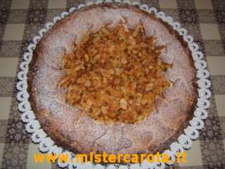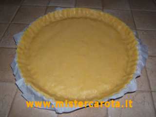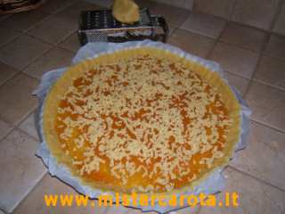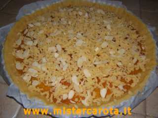 prendere una metà della frolla rimasta, che nel frattempo avevo riposto di nuovo in frigo, e grattuggiarla con una grattugia a fori grandi al centro della crostata