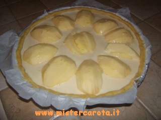 Ingredienti per la farcia: 3 mele - succo di 1 limone - 3 uova - 100 gr di zucchero - la scorza grattugiata del limone - 125 ml di panna fresca.