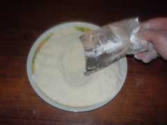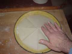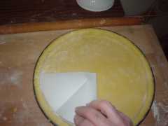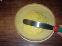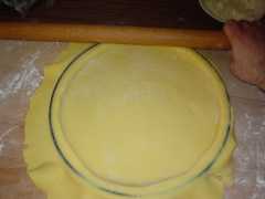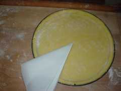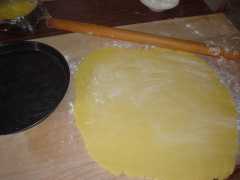 Avvolgere l'impasto sul mattarello e con delicatezza adagiarlo su una teglia da crostata imburrata. Sempre con delicatezza adattare l'impasto al fondo della teglia