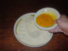 Mettiamo nel frullatore la farina, lo zucchero e il burro freddo di frigorifero e tagliato a pezzi; riduciamo il tutto in "sabbia".