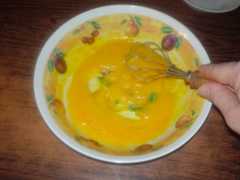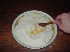Amalgamiamo velocemente con un cucchiaio oppure con il frullatore, evitando per quanto possiamo di toccare l'impasto con le mani
