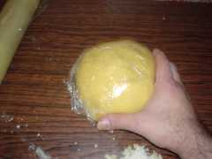Avvolgiamo l'impasto nella pellicola da cucina e mettiamola in frigo per un'oretta.