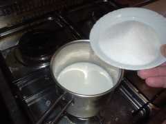 Portiamo ad ebollizione il latte con metà dello zucchero e la vanillina