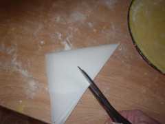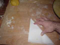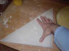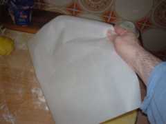 Stenderlo con il mattarello usando la farina per evitare che si attacchi al piano di lavoro o al mattarello.