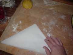 ...sino ad avere uno dei lati uguali del triangolo poco piu' grande del raggio della teglia